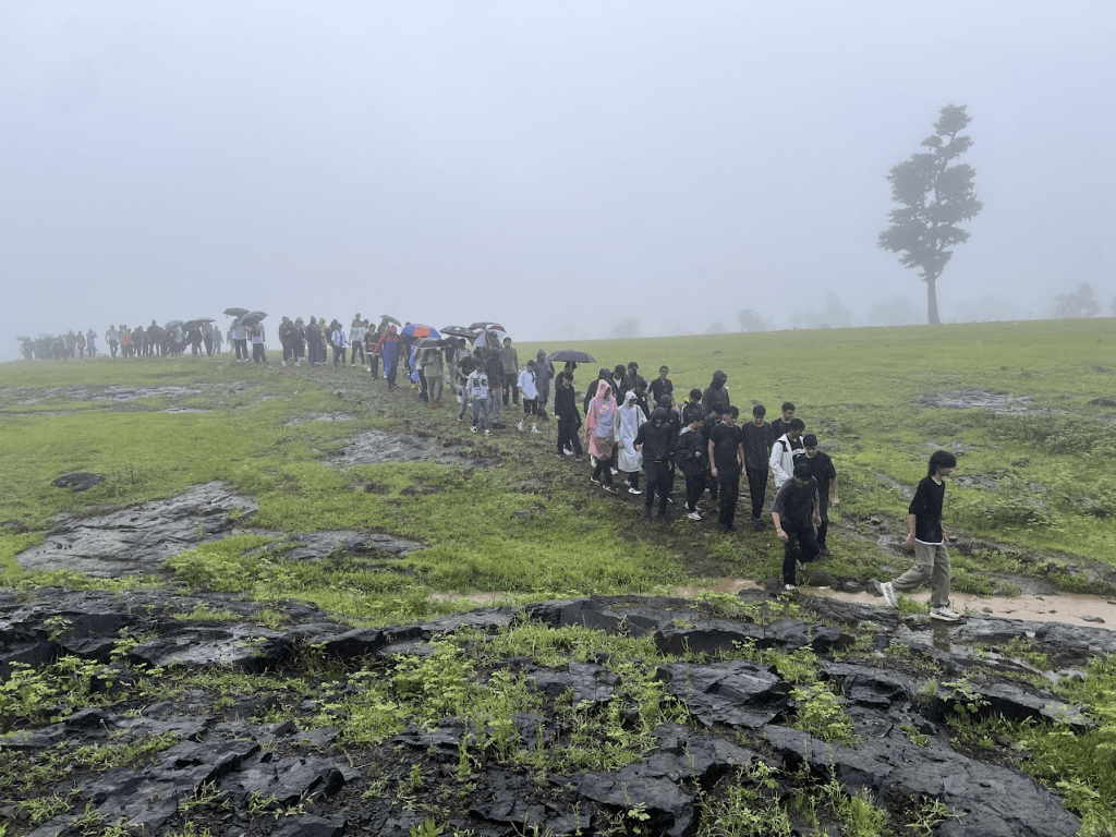 The trek itself was a major challenge because of the uneven and slippery terrain, especially due to the rainy weather. Throughout the journey, I had to carefully watch my steps and sometimes use rocks, tree branches, or ropes for support.